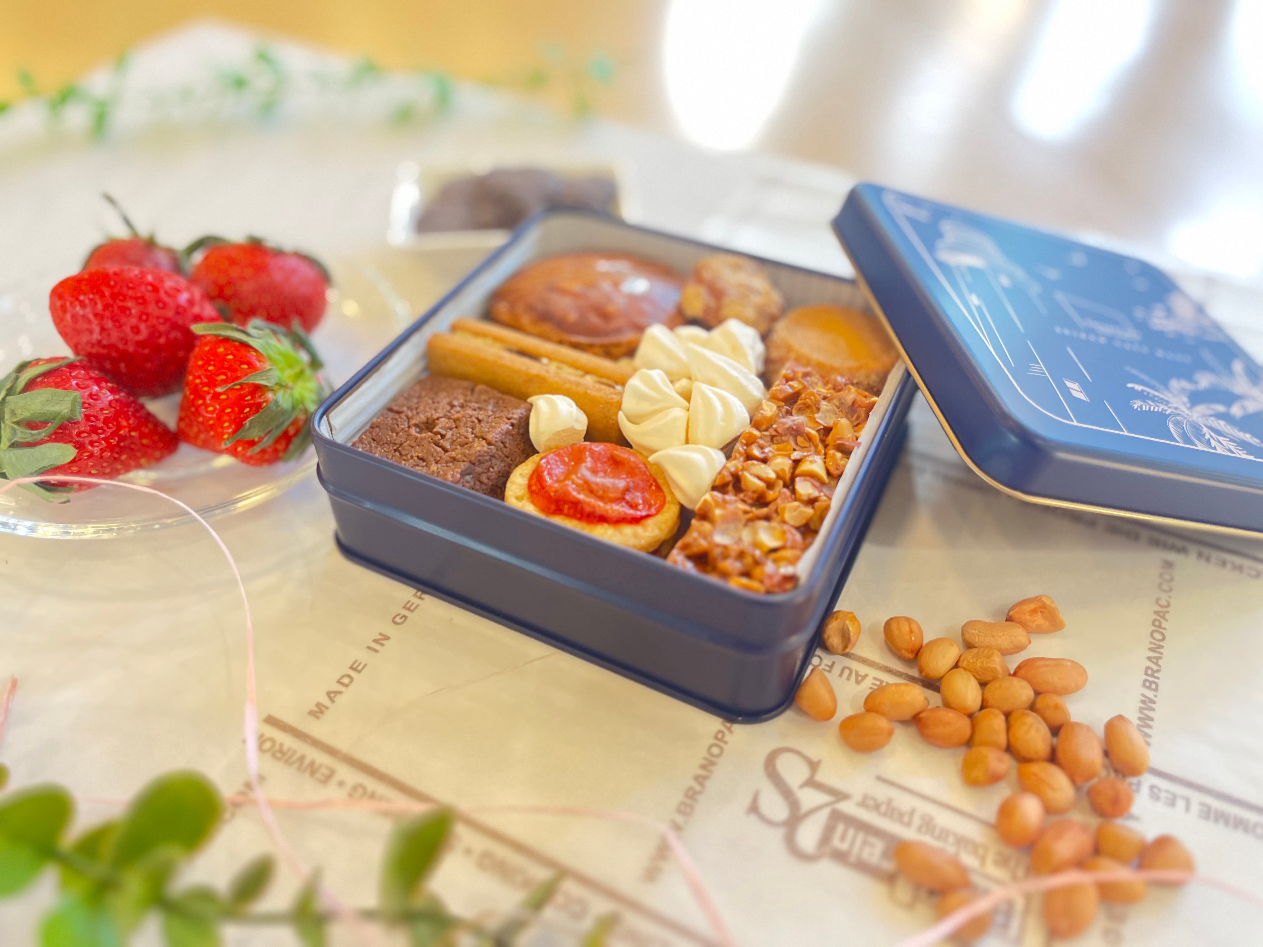 房総産の食材を使い、いろいろな種類の焼き菓子を詰め合わせたクッキー缶。